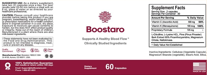Boostaro is a dietary supplement designed to support healthy blood circulation, cardiovascular wellness, and male vitality. Its formula combines vitamins, amino acids, and plant extracts commonly used in modern supplementation.